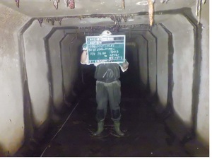 管路内に調査員が入り、管種、管径、管路施設の布設状況、土砂等の堆積状況、管の破損、継手部の不良、管壁のクラック、取付管口、管のたるみ・蛇行、取付管の突き出し、油脂の付着、木の根の侵入、浸入水等の異常の程度を確認し、緊急度を判定します。