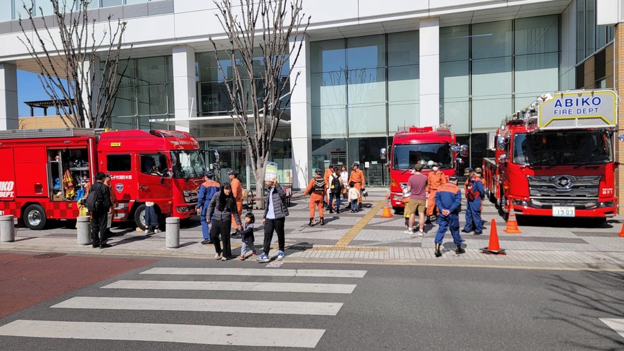 けやきプラザのスペースにはしご車、救助工作車などの消防車両を展示します。(災害発生時は出動を優先します。)子供用防火服を着て記念撮影もできます。