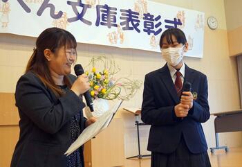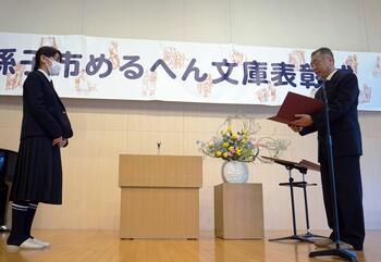 賞状授与の様子(最優秀賞古登正子賞 久野さん)