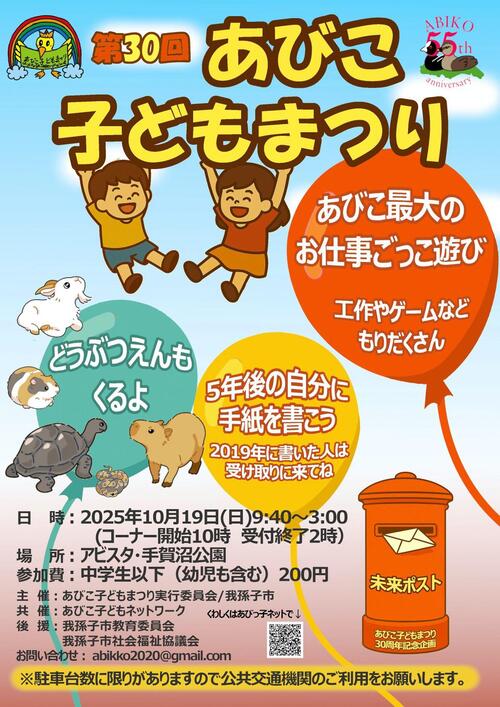 | 8 | 30周年企画 未来ポスト | 無料 | 幼児 | あり | 子どもまつり実行委員会本部 | |