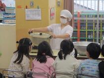 三歳児クラスの保育参加が行われました。かわいらしい飾りを身につけてダンスを披露し、ゲームは親子で対決しました。親子ダンスで締めくくったあとは親子で給食タイム。保護者の方には普段、子どもたちが食べている給食の試食をしてもらいました。味付けや量など具体的に知ってもらえる良い機会となりました。