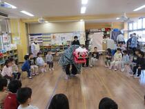 保育園に獅子舞がやってきました!子どもたちはドキドキしながらもこの一年健康に過ごせるように頭を噛んでもらいました。