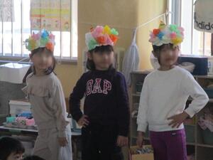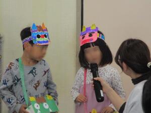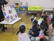 2月3日に節分集会が行われました。節分の由来や節分にまつわるお話を聞いたあと、各クラスで作ったお面や豆入れの紹介を代表のお友だちが発表してくれました。集会のあとは年長組さんが鬼役になり、年下のクラスを回ってくれました。自分の中にある泣き虫鬼や弱虫鬼をやっつけて、また一つ成長した子どもたちです。