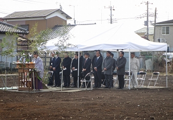 地鎮祭当日は、工事関係者様、星野市長、丸教育長、加藤湖北小学校長、我孫子市職員等が参列のもと、神事が厳かに執り行われ、工事の安全を祈願しました。