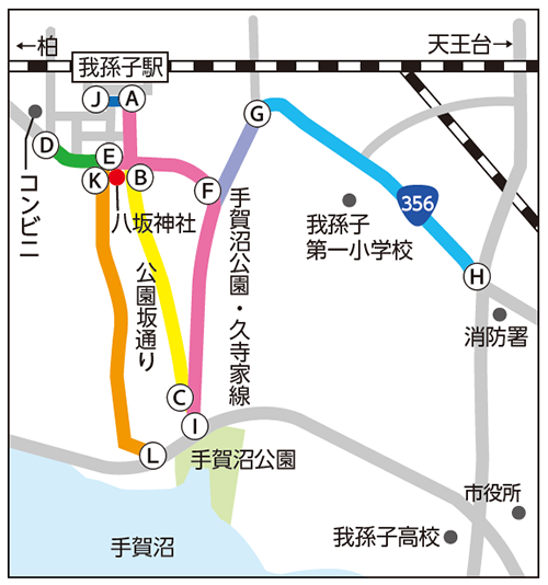 - 手賀の杜線…我孫子駅南口発午後1時43分から運休、手賀の杜ニュータウン発午後1時16分