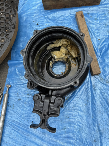 右の写真は、汚水を汲み上げるポンプに水に溶けないペーパー・おむつが詰まった箇所です。