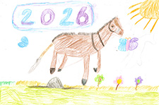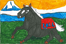 広報あびこ令和8年1月1日号1面企画では、市内小・中学校にご協力いただき、午年をテーマとした作品を募集しました。