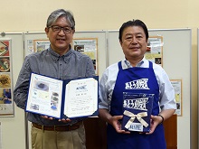 おとう飯部門の受賞者には、おとう飯部名誉顧問の星野市長から、賞状と記念品を贈りました。おとう飯部門賞は4人で、部長賞3人、副部長賞が1人です。このうち、当日は3人が参加してくれました。