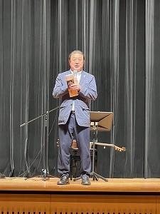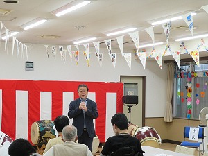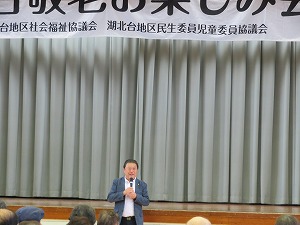 星野市長は、挨拶の中で、敬老お楽しみ会開催に御尽力いただいた湖北台地区社会福祉協議会や関係者の皆様に感謝するとともに、参加された高齢者の皆様に「お身体を大切に、健やかで充実した毎日をお過ごしください」とお祝いの言葉を贈りました。