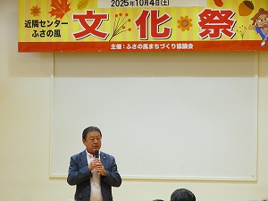 近隣センターふさの風で開催された文化祭を訪問し、オープニングセレモニーで挨拶しました。