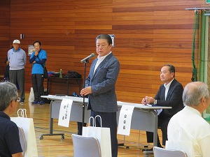 星野市長は、挨拶の中で、全国大会等で活躍された方々に敬意を表するとともに、今大会の開催にご尽力いただいた我孫子市スポーツ協会をはじめ関係者の皆様に感謝しました。