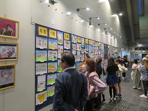 アビスタで開催された「第19回ちびっこ展」を訪問しました。会場には、就学前から高校生までの子どもたちが描いた作品が展示され、星野市長は、個性あふれる作品の1つ1つを楽しみながら鑑賞しました。
