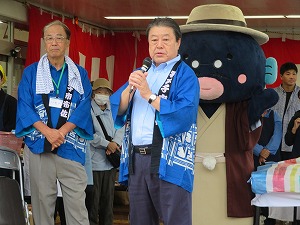 みずきどんとこまつりで挨拶する星野市長