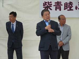 天王台ふるさと祭りで挨拶する星野市長