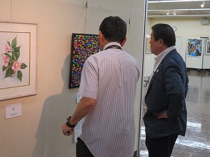 星野市長は、作品の説明を聴きながら、1点1点じっくりと鑑賞しました。