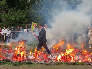 星野市長は、今年も火渡りをし、無病息災を願いました。