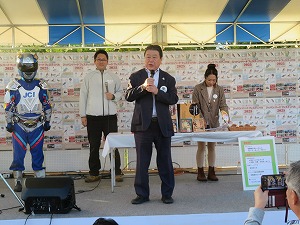 星野市長は、お祭りの開催にご尽力いただいた湖北台まちづくり協議会の皆さんに改めて感謝するとともに、今回のお祭りのような地域の活動を通じて、子どもたちには地元への誇りと愛着を育んでほしいと挨拶しました。