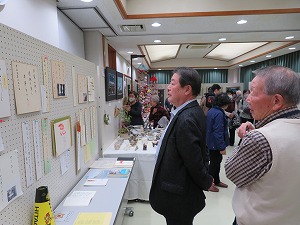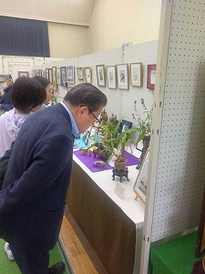 北部地域文化祭の出展作品を鑑賞する星野市長