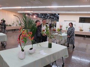 市民プラザで開催された第68回我孫子市民文化祭「華道展」を訪問しました。星野市長は、作品の説明を聴きながら、1点1点じっくりと観賞しました。
