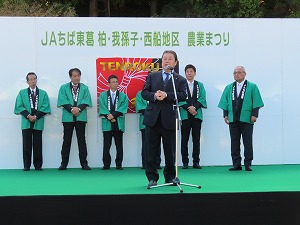 JAちば東葛柏・我孫子・西船地区農業まつりで挨拶する星野市長