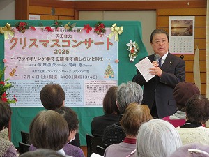 ふさの風クリスマスコンサートで挨拶する星野市長
