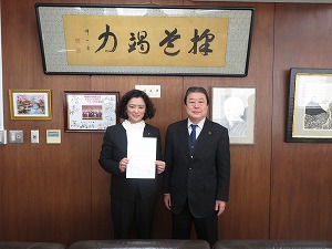 12月議会で再任された新山教育委員に発令書をお渡しし、これからの時代を生きる子どもたちのため、魅力ある教育の実現に向け、協力をお願いしました。